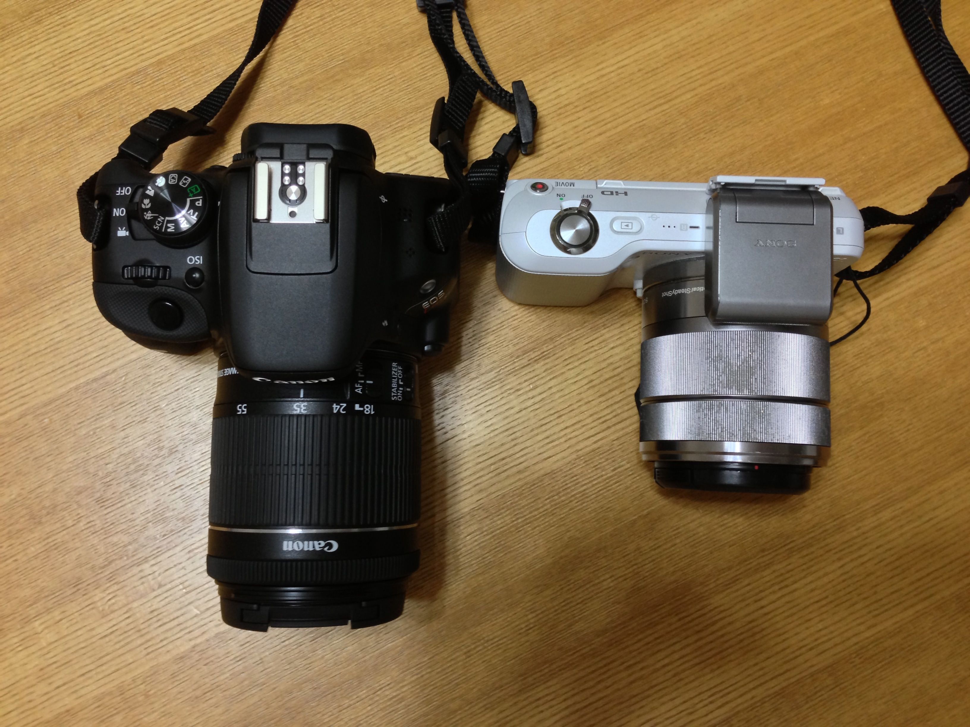 NEXと比べると一回り大きいくらいですが、一眼レフ機だと思うと相当に