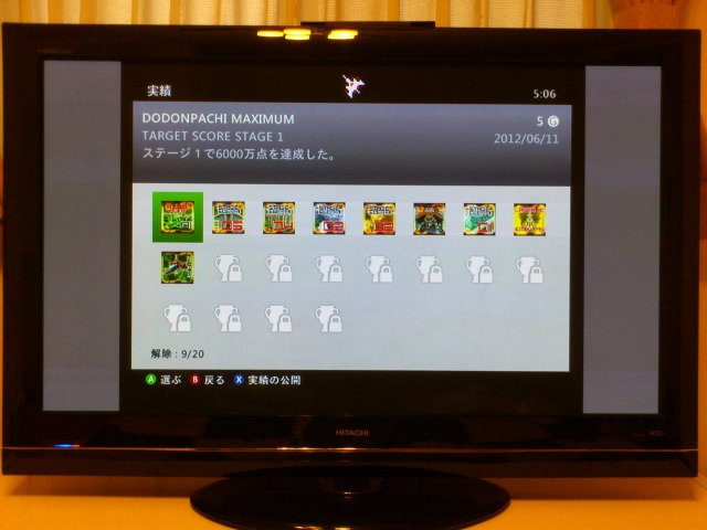実績もアカウントに統合されるので、XBOX360上でもDODONPACHI MAXIMUMの実績が見えますし