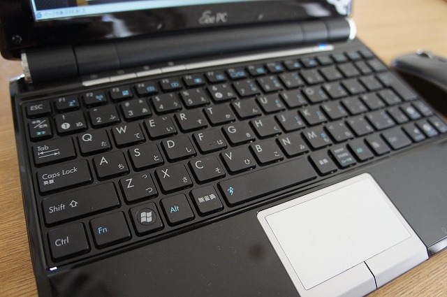 見た感じ、見慣れたEeePCって感じですが、キーボードが今風?のキーが平べったくてキーとキーの
