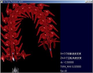 一応、Z⇔Aで最大回転角度の変更、X⇔Sで移動速度の変更が出来ます。
