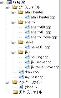 後、自機の当たり判定を入れたり、ファイルを分割して読み込みできるようにしました。