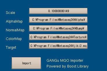 Alpha,Normal,ColorMapに対応したフォルダを選択して、Targetには表示させたいmqoファイルを