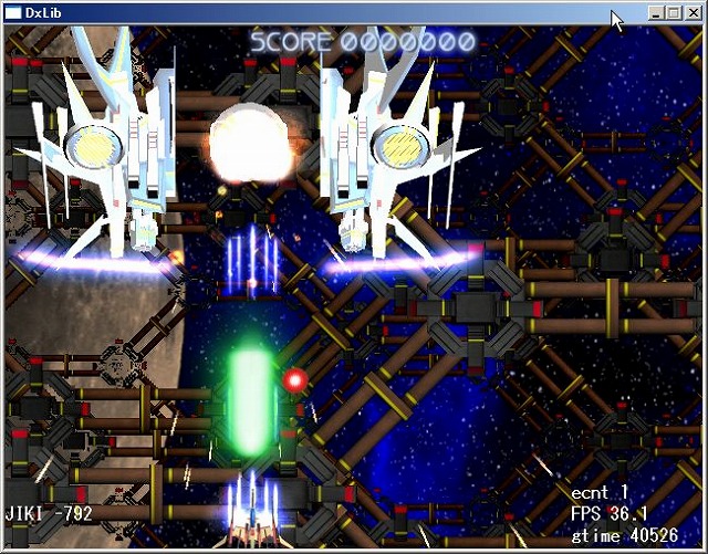 しまうので、加算合成の奥に普通に敵画像を表示させているので、実質4枚重ねての表示。