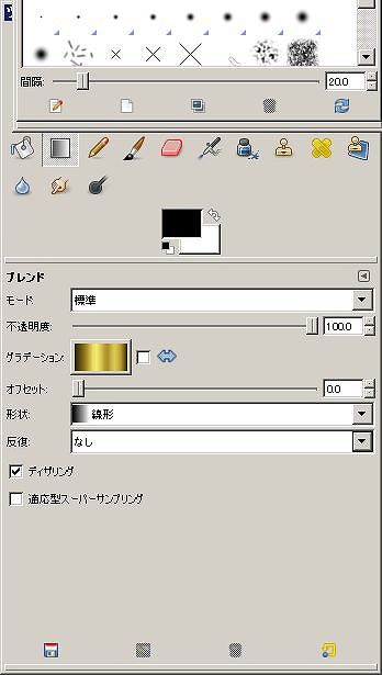 ツールボックスのグラデーションのアイコンをクリックすると使えるのですが、このグラデーションの