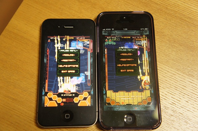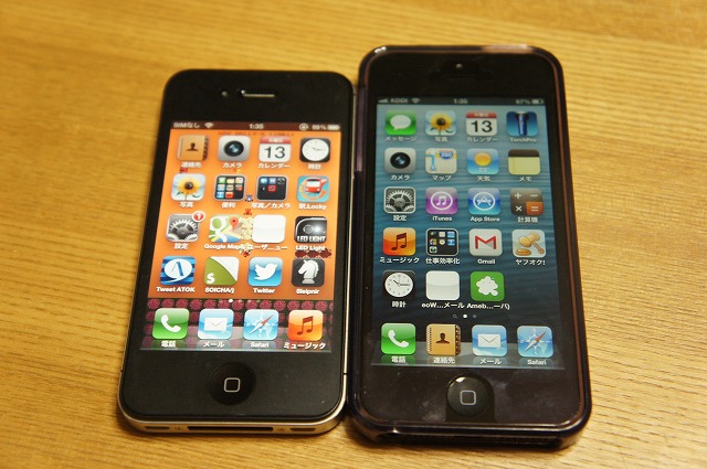 iPhone4Sと比べてみました。アイコンが一段多く表示出来るようになってて