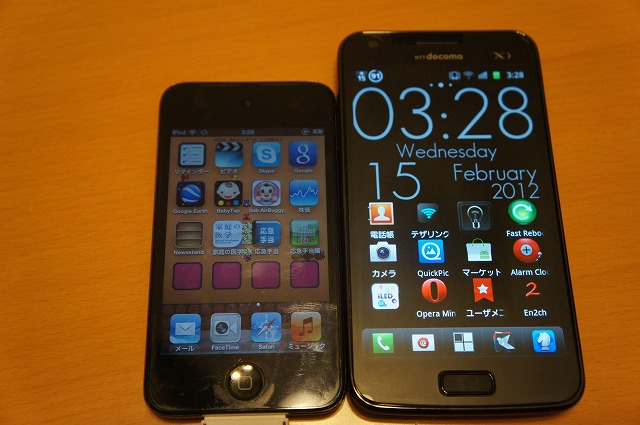 GALAXY SII LTEと比べると、かなり大きさが違います。画面が見やすいのはGALAXYですが