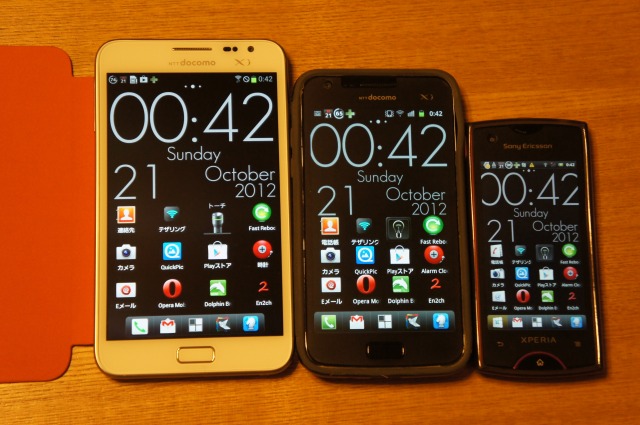 左からGALAXY Note/GALAXY S II LTE/Xperia Ray