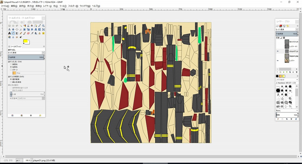 保存した展開図をGIMP2などで色付けするのですが・・・