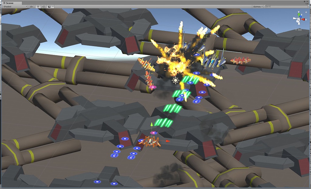 アセットを使うと簡単にリアルな爆発とかを出せるのは良いので、このまま3Dで作っていくか2Dに戻して作って行くほうが良いのか色々と考え中です。2.5DSTGの作り方講座とかあったら速攻で受講するんですけどねぇ(笑)