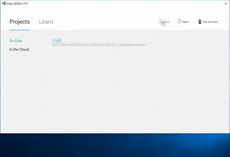 ユーザー登録(無料で出来ます)などをしてUnityを立ち上げたら右上のNewボタンから新しいプロジェクトを作成します。