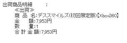 ビックカメラで注文していたデススマイルズが発送されてました。