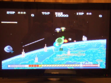 ゲーム内容は、基本は横スクロールで敵を避けつつ、トラックボールで標準を動かして