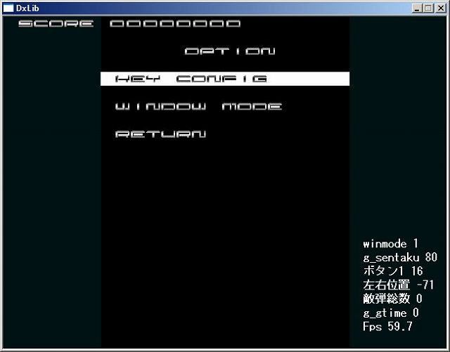 オプション選択画面を追加して、キーコンフィグとウィンドウモード切替を実装してみました。