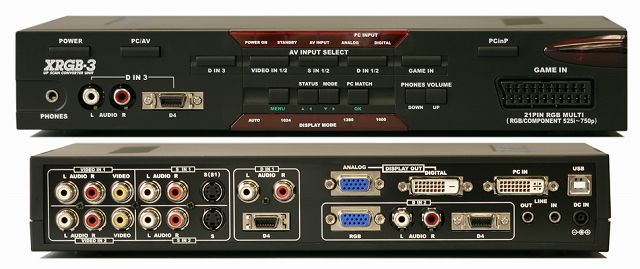 コンポジットやS端子、D端子、RGB21ピンなどを入力して、アナログD-Sub15ピンやデジタルDVI-D