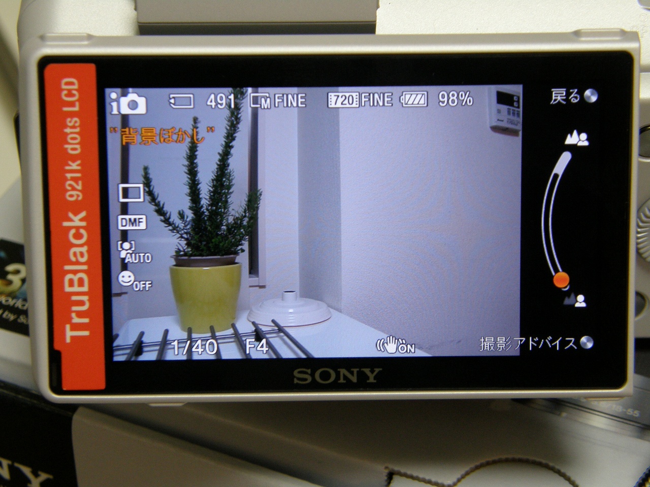 ダイヤルをクルクル回すと背景がボケたりくっきりしたりします。