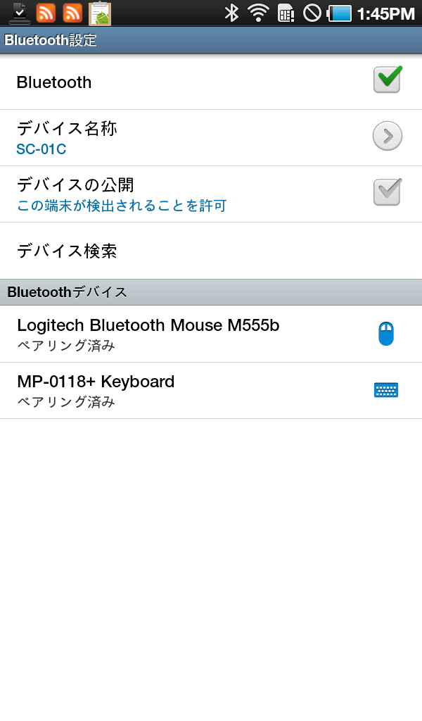 接続は設定メニューからペアリングすれば自動的に認識してくれました。