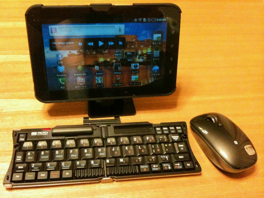こんな感じでマウスとキーボード繋いで使うとUMPC的に使えて良い感じ(^^)