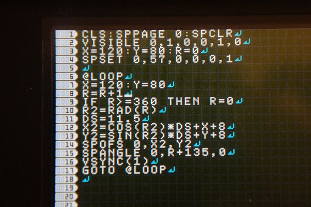 プチコンにはSPANGLEというスプライトを回転させる命令があるのですが