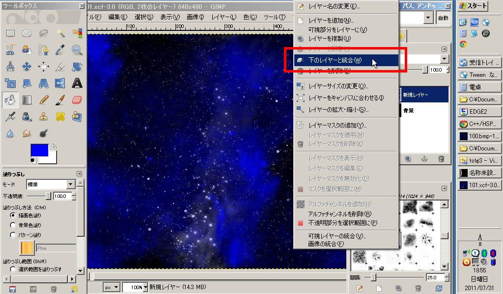 大体良い感じかなーと思ったらレイヤー全体を結合します。