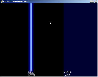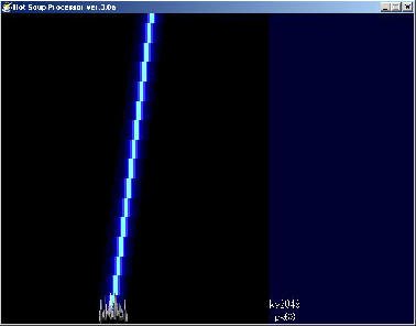 こんな感じで(といっても画像じゃわかりませんが^^;)自機が移動しても、レーザーはちゃんと真っ直ぐに表示されるようになりました^^