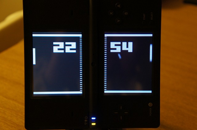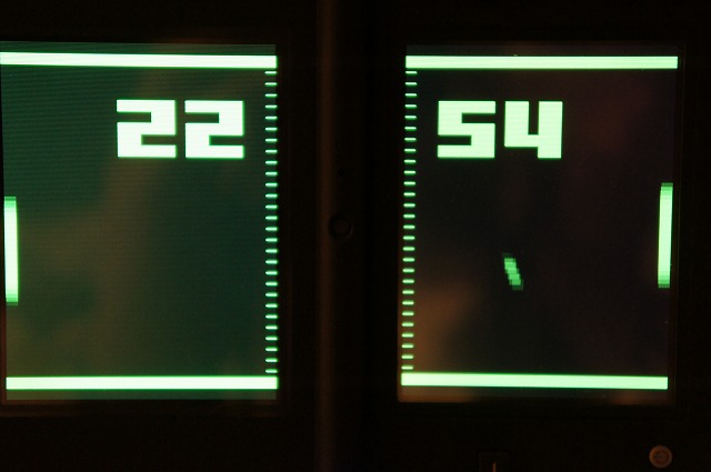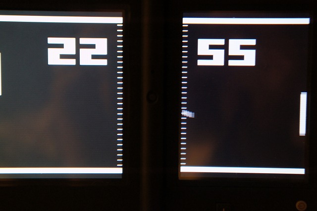 Pong風な画面をバックに本来得点の部分に時計を表示させています。