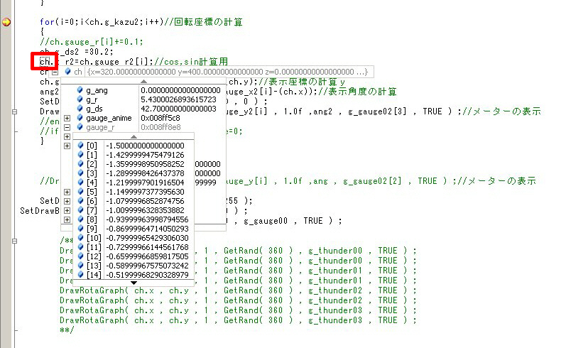 で、変数の内容を見てみたいと思ったのですが、今まではDrawFormatStringなどを使って