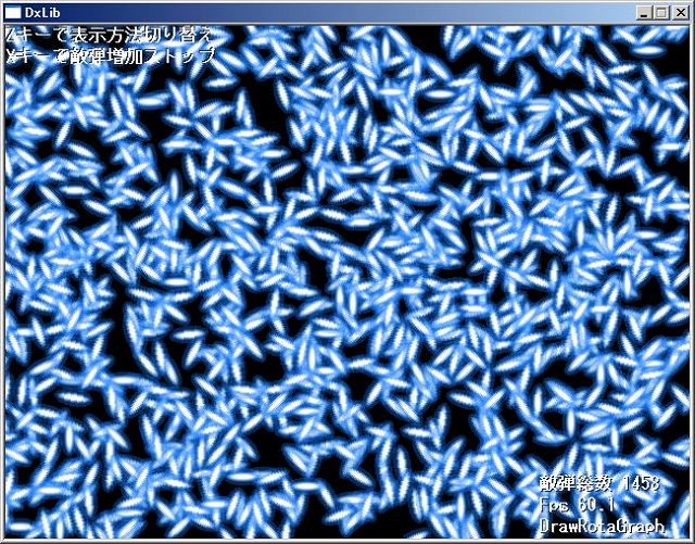 検証してみた所、自分のPCではDrawRotaGraph関数を使っていると24000発程度から