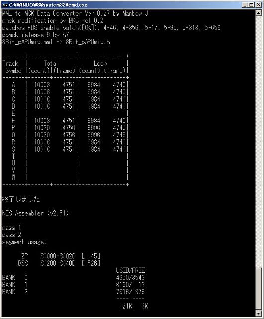 打ち込めば、同じフォルダに8Bit_pAPUmix.nsfと言うファイルが出来ます。