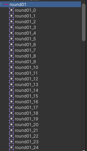 これでRound01という親オブジェクトに1ドット毎に128個の分割された子オブジェクトが追加されました。これを親オブジェクトから操作して行きます。
