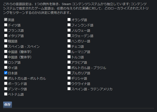 実績画面に戻ると言語が選択出来るようになっています。