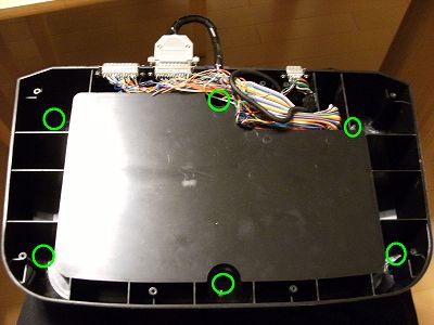 緑の丸の部分6箇所を7ミリのソケットレンチで外します。私は7ミリのソケットがなかったので