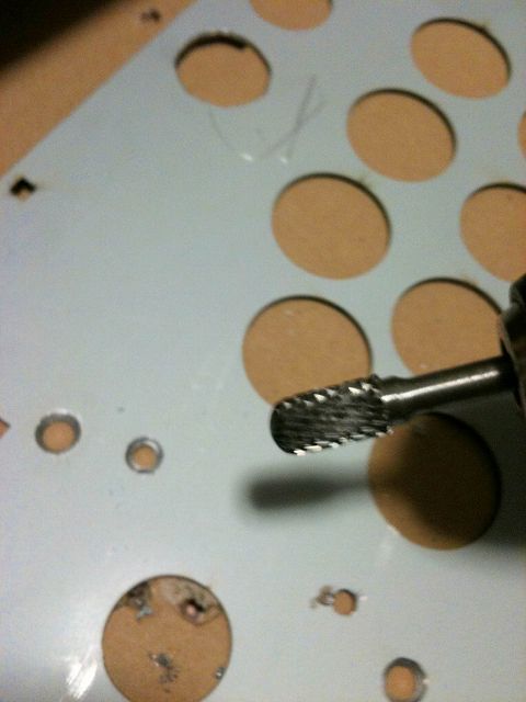ドリルで少しづつ穴を開けていって、最後にヤスリで仕上げます。