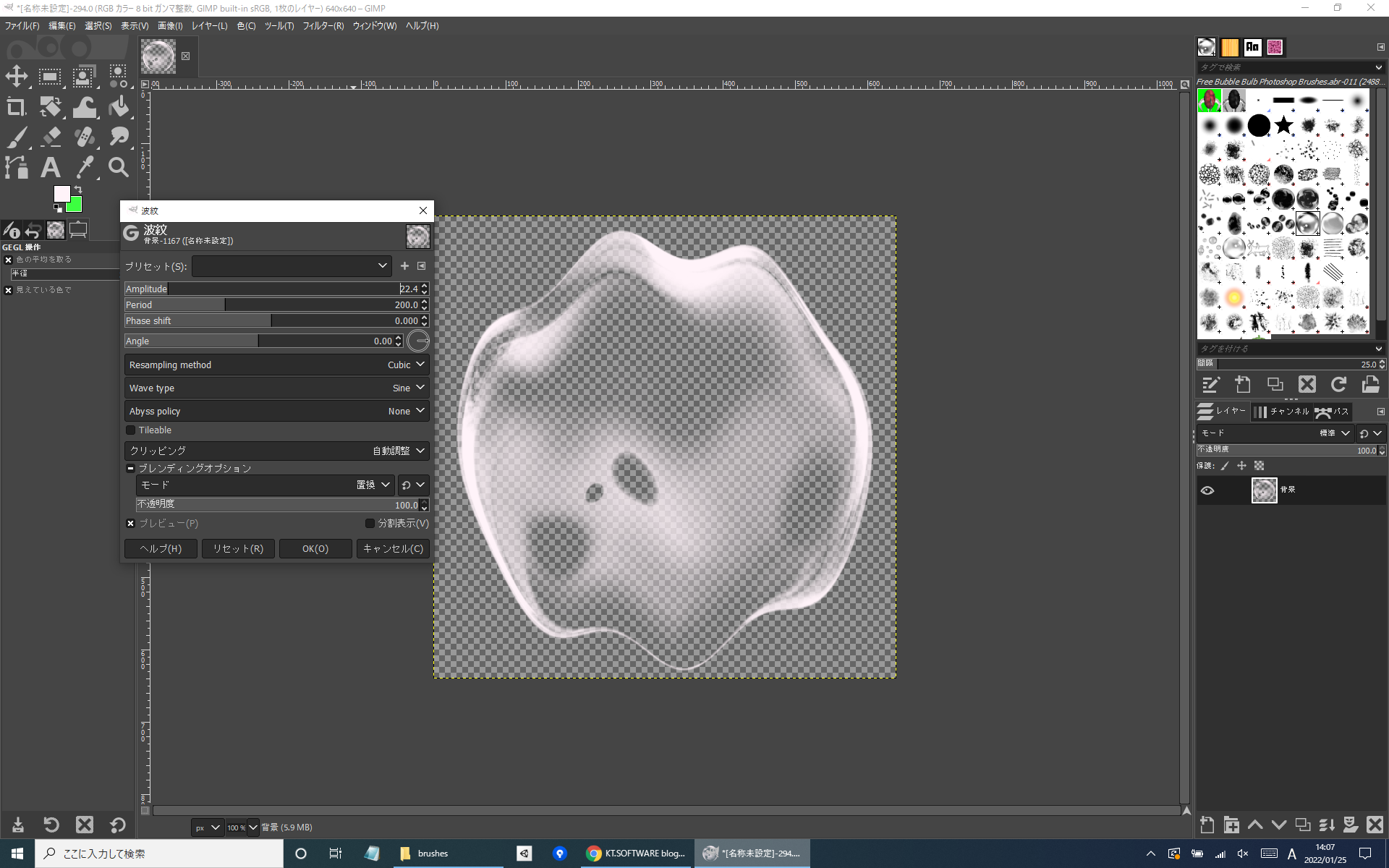 波紋ダイアログが開くのでAmplitudeとPeroidを弄って良い感じにします。