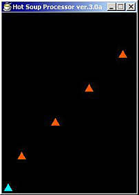 青い▲が自機で、オレンジの▲がオプションです。自機の動きに合わせて