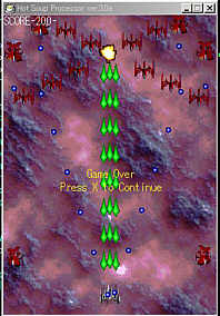 ty(cnt)=py-20 ;ty(cnt)(弾のy座標)にpy(自機のy座標)より40引いた値を代入。(弾と自機が重ならないようにする為)