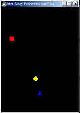 コレを実行すると敵「■」が弾「●」を自機「▲」に向かって撃ってきます。