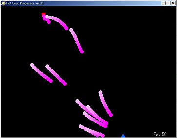 配列にある程度の座標を記憶させておき、一定間隔で尾の部分を表示させて