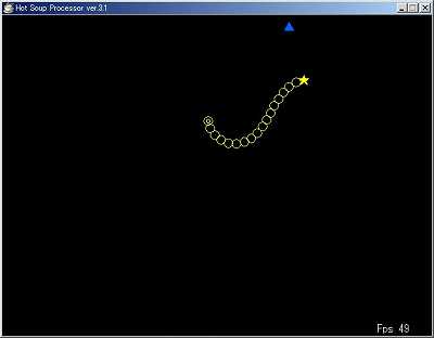 自機▲に向かって先端★が向かって来ますが、角度を制限しているので関節同士が