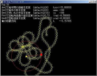 移動方法を、自機に向かってくるのではなく赤い丸の方向に向かって動くようにしてみた。