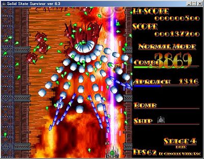 あと、4面等の赤系の背景の時に敵弾がピンクだと見にくいかと思って色を変更してみました。