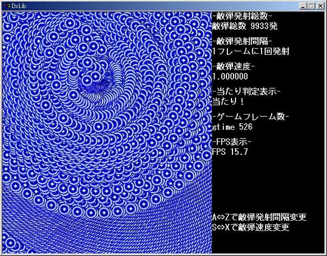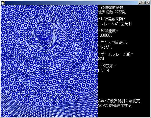 A⇔Zキーで敵弾発射間隔を変更出来ます。