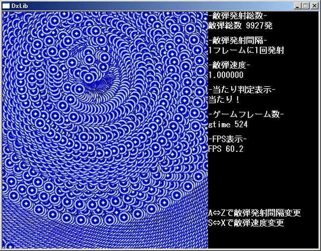 S⇔Xキーで敵弾速度を変更出来ます。