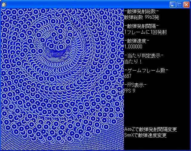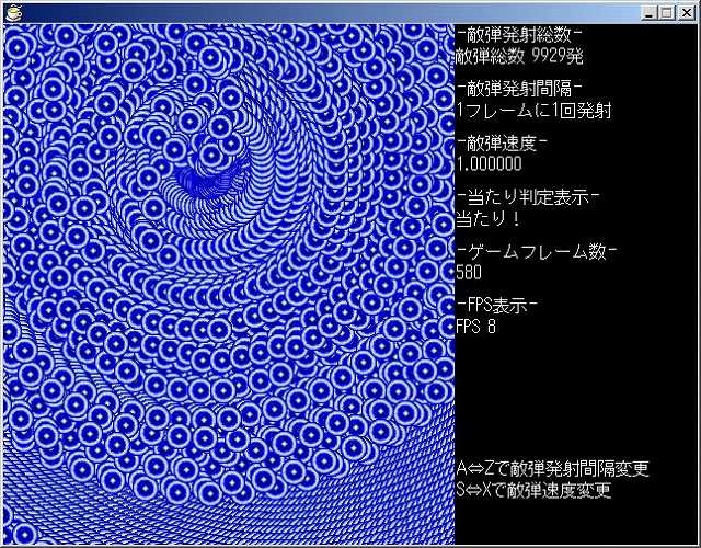 敵弾10000発撃たせるとFPS8程度。コマ送りみたいな感じです。