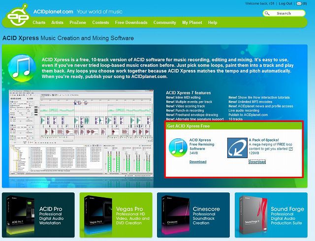 ACID Xpress以外にループ素材も一緒にダウンロード出来ます。