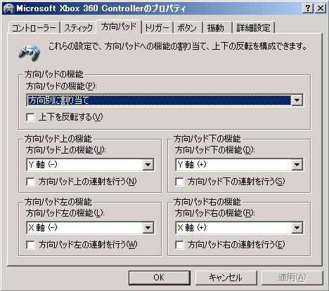 (私の作ったゲームもそうです)ゲームコントローラのプロパティで変更すれば十字キーで