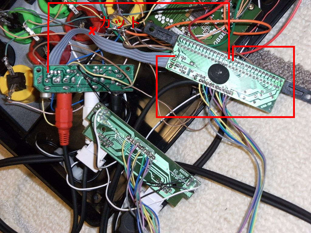 元々のオーディオの線をカットして、ソフトを挿すコネクタの45番と46番をバイパスさせるって感じ。