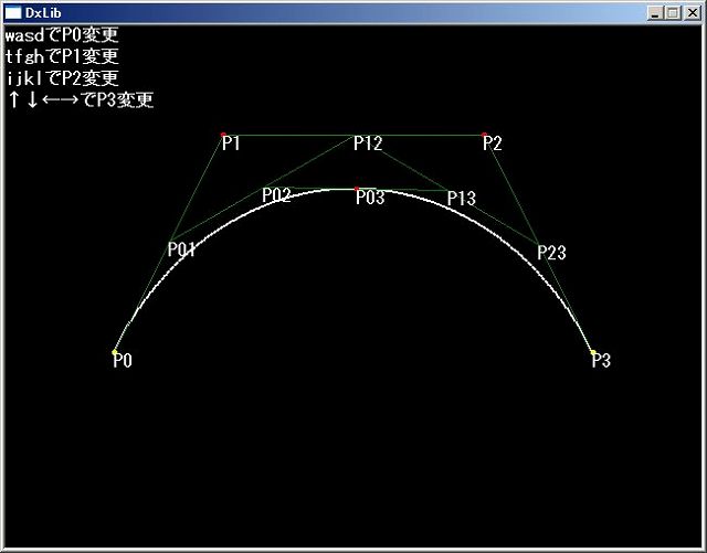 今回作ったプログラムでも基準点、P0、P1、P2、P3をキーボード操作で移動出来ますので