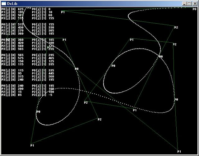 これを踏まえて、とりあえずベジェ曲線をいっぱい表示出来るプログラムを作ってみました↓