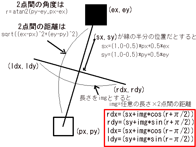 で、ここまで計算できたら(rdx,rdy)(ldx,ldy)を計算します。