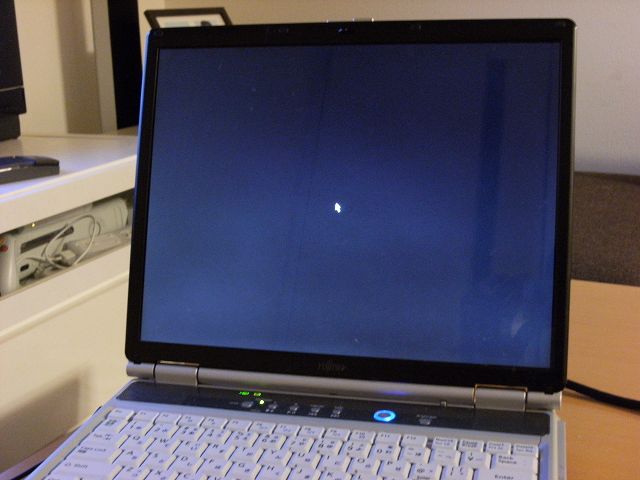 症状としては、windowsロゴが出た後に黒い画面の上にマウスカーソルが出て